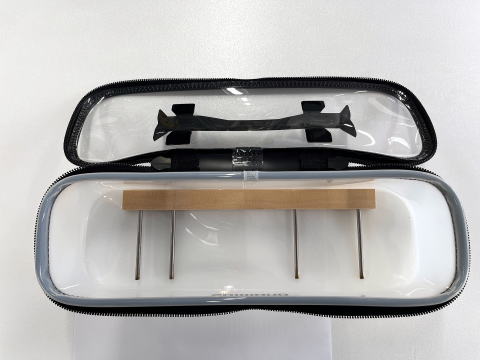 見ての通り、開いた針先を元の角度に戻す針先曲げです。アルミ製